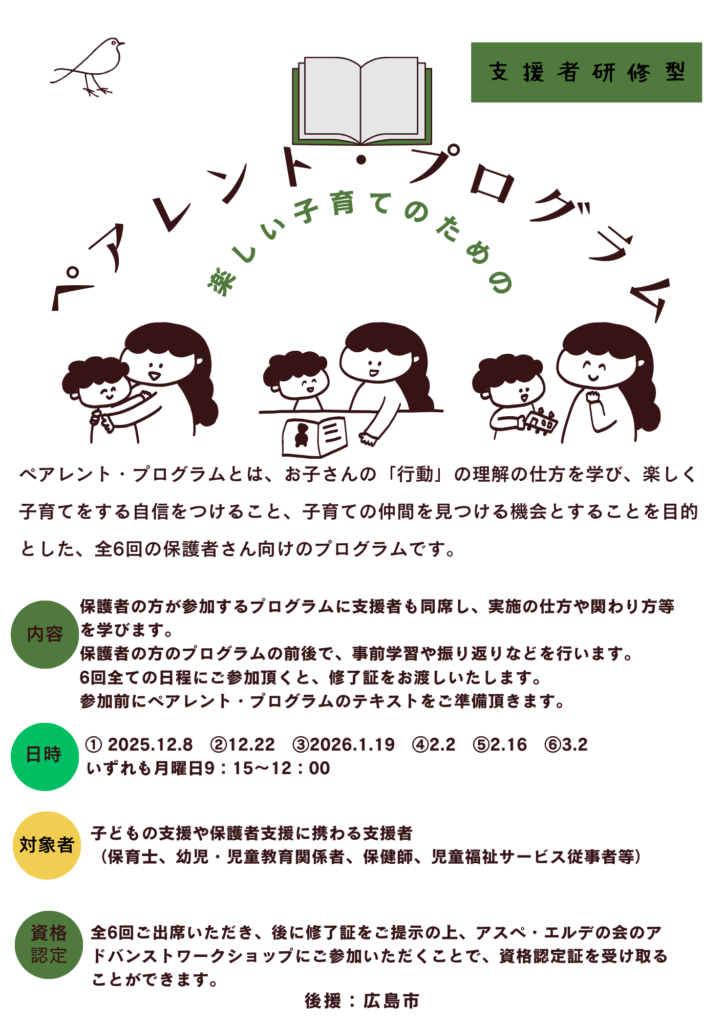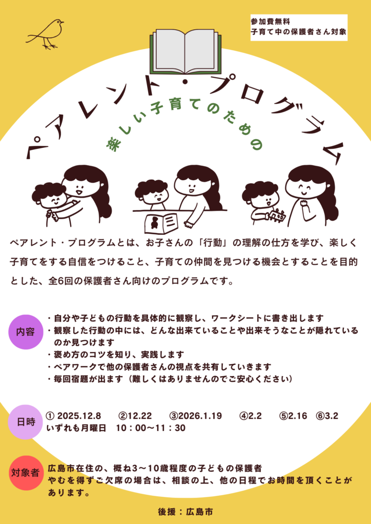 「楽しい子育てのためのペアレント・プログラム」を開講いたします!
