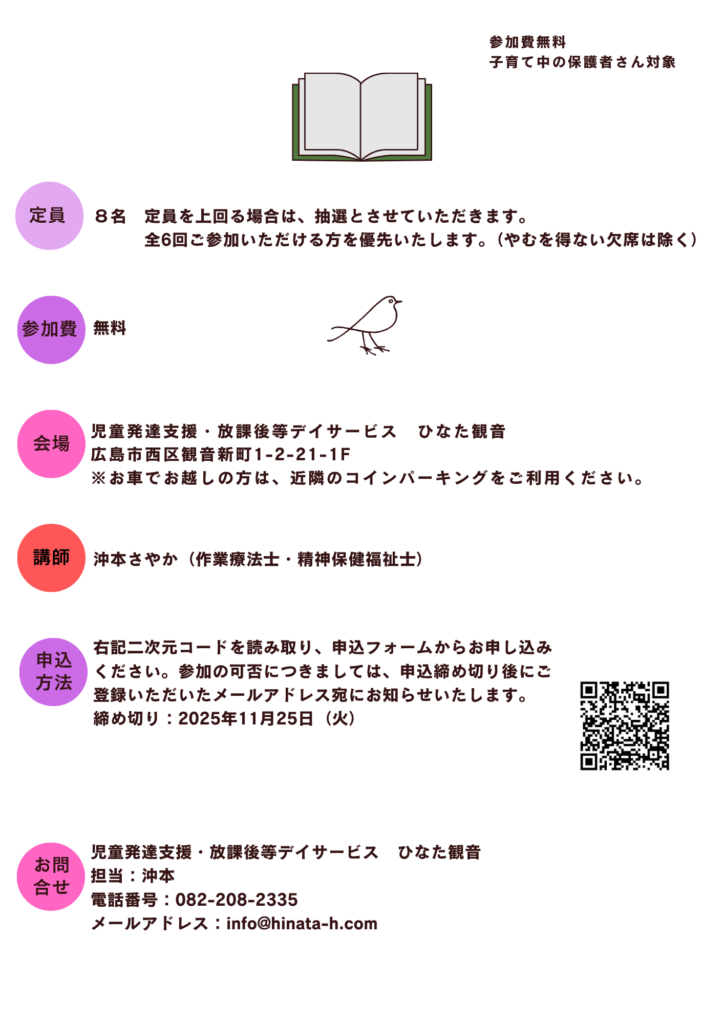 昨年度までは、ひなた観音の保護者様限定としておりましたが、今年度はひなた観音をご利用でない方もお越しいただけるようになっております!
