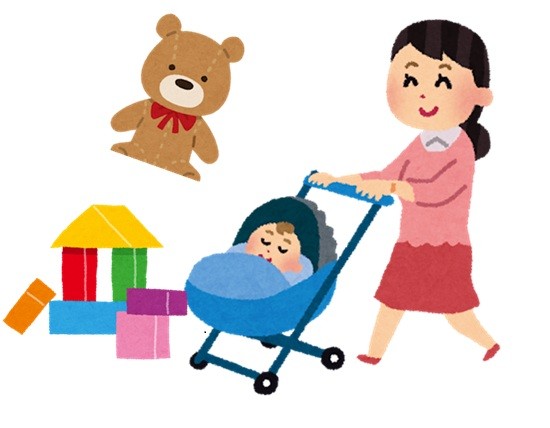 赤ちゃんのおもちゃ、ベビーカーにスプレー!